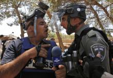 به گزارش پایگاه خبری تحلیلی گرو، درگیری خبرنگار فلسطینی صداوسیما با سرباز مزدور اسرائیلی در حاشیه نمازجمعه این هفته در کرانه باختری را میبینید./عکس: Musa Al Shaer