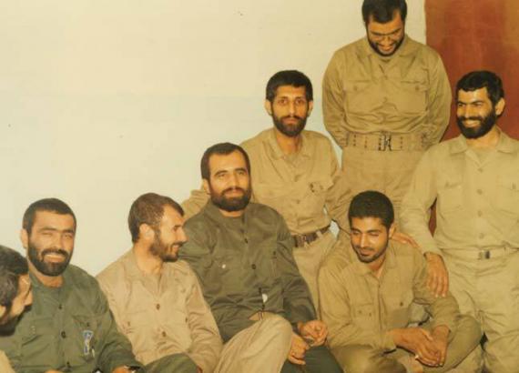 از چپ: امین شریعتی، مرتضی قربانی، جعفر اسدی، شهید علی هاشمی، غلامرضا محرابی، احمد صیاف زاده و شهید حاج قاسم سلیمانی
