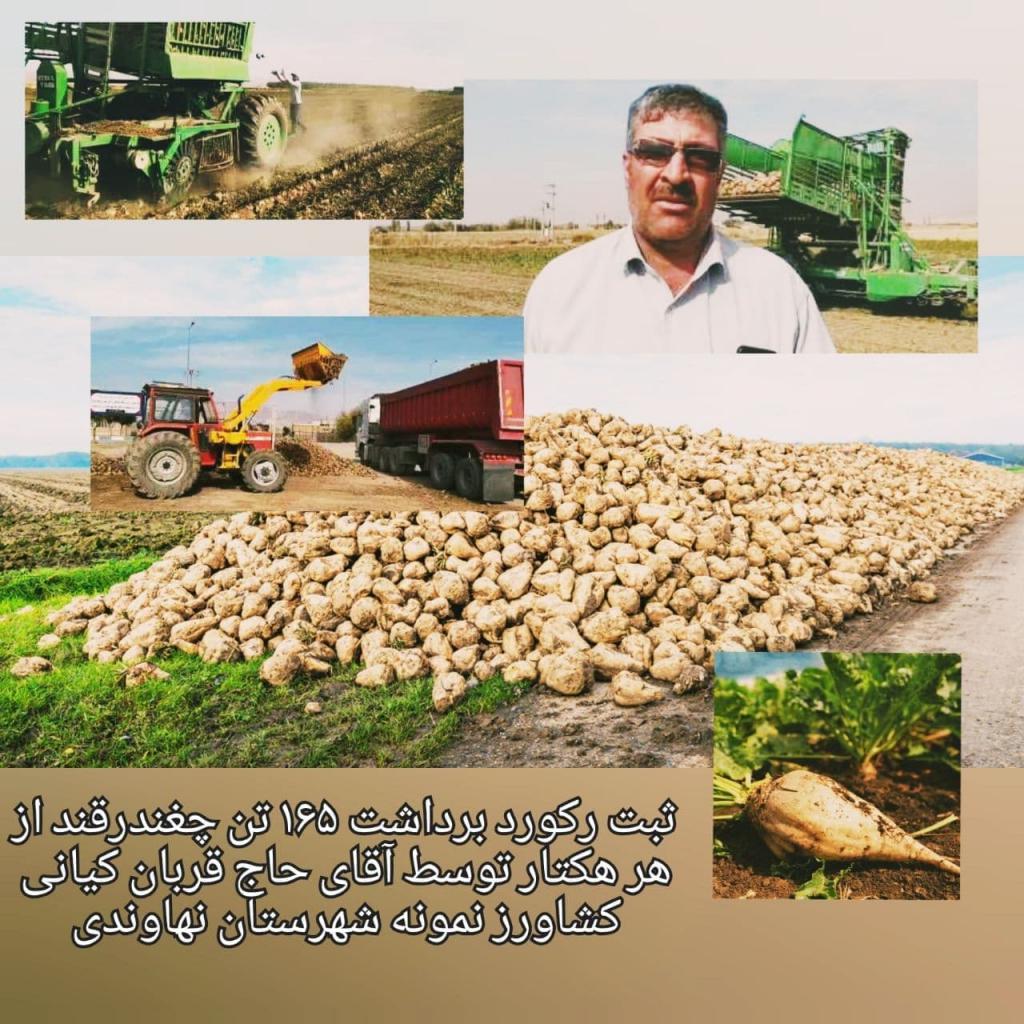 به گزارش پایگاه خبری تحلیلی گرو، کریم حاج بابا علی، مدیر جهاد کشاورزی نهاوند گفت: متوسط تولید چغندر قند در هر هکتار بین ۶۰ تا ۷۰ تن است که آقای حاج قربان کیانی کشاورز نمونه نهاوند با تولید ۱۶۵ تن در هکتار رکورد کشوری این محصول را شکست.