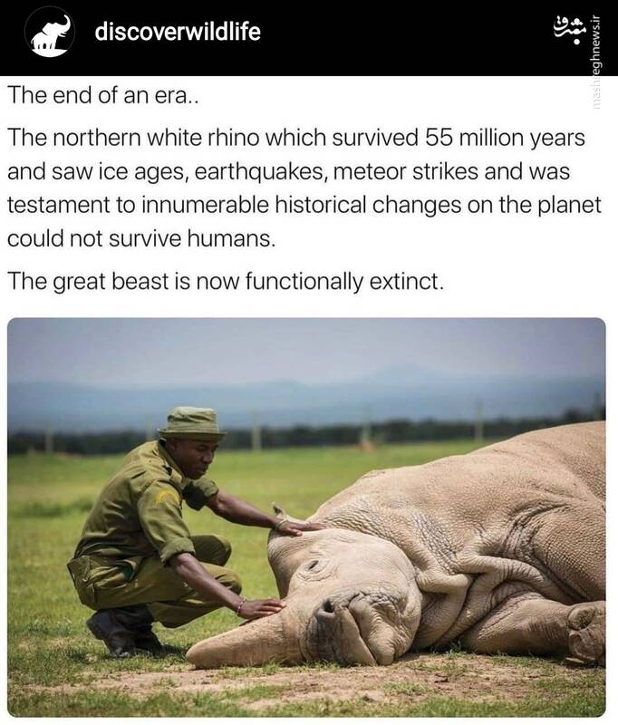 به گزارش پایگاه خبری تحلیلی گرو، یک کاربر در توئیتی نوشت: آخرین کرگدنِ سفید شمالیِ دنیا هم مرد و این گونه منقرض شد.
