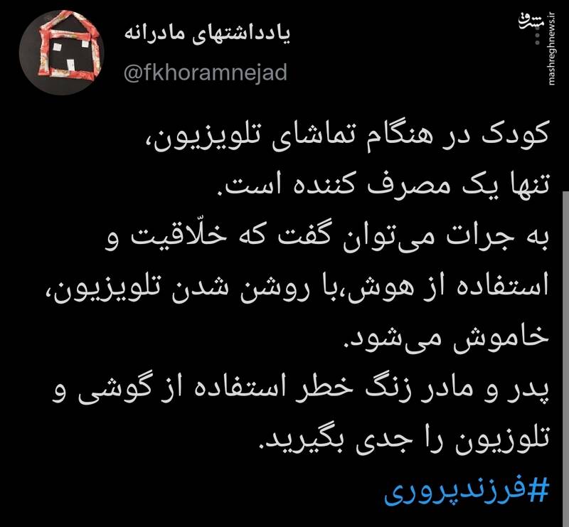 به گزارش پایگاه خبری تحلیلی گرو، صفحه توییتر یادداشتهای مادرانه نوشت: