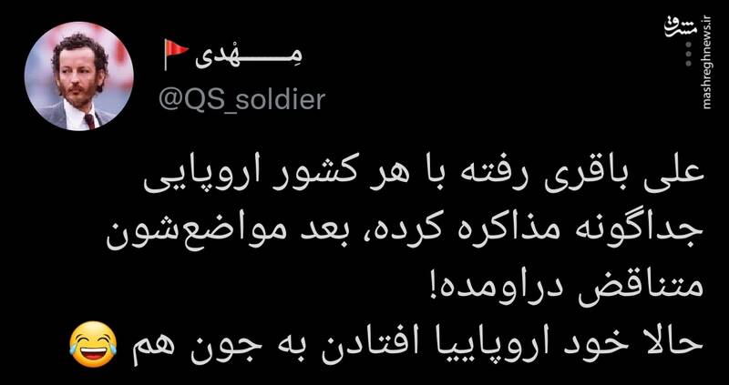علی باقری رفته با هر کشور اروپایی جداگونه مذاکره کرده، بعد مواضعشون متناقض دراومده!