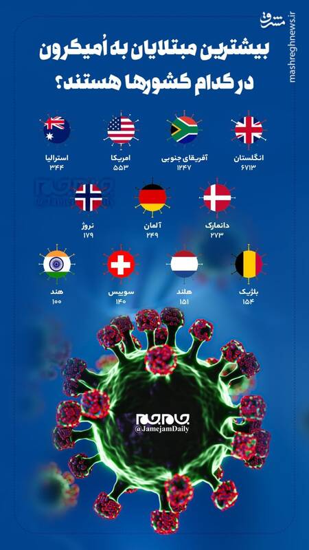 به گزارش پایگاه خبری تحلیلی گرو، کانال تلگرامی جام جم اینفوگرافی درباره آمار مبتلایان به کرونای امیکرون در جهان را منتشر کرد.