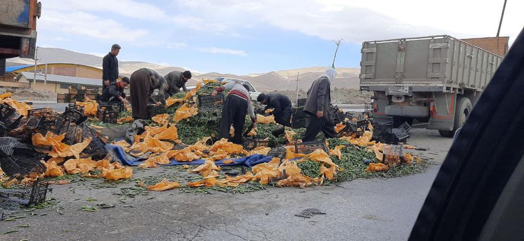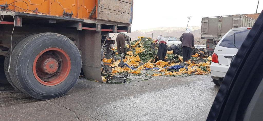 مردم نهاوند در اقدامی قابل تحسین به کمک راننده رفتند و اقدام به جمع آوری بار این کامیون کردند.
