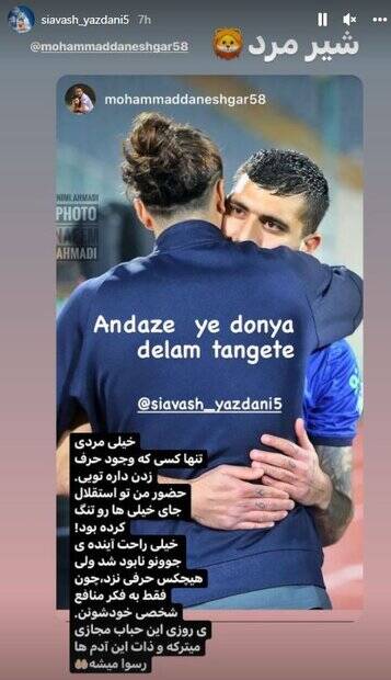 ابتدا این محمد دانشگر بود که با انتشار تصویری از یزدانی، برای او اظهار دلتنگی کرد. یزدانی هم در اینستاگرام خود، در واکنش به اقدام دانشگر نوشت: «خیلی مردی. تنها کسی که وجود حرف زدن داره، تویی. حضور من توی استقلال جای خیلیها را تنگ کرده بود! خیلی راحت آینده یک جوان نابود شد ولی هیچکس حرفی نزد چون به فکر منافع شخصی خودشونن. یک روزی این حباب مجازی میترکه و ذات این آدمها رسوا میشه.»