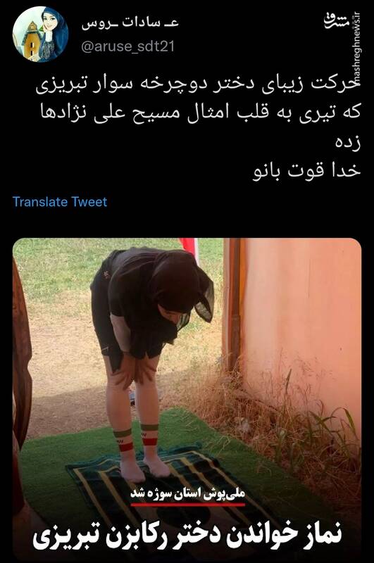 به گزارش پایگاه خبری تحلیلی گرو، یک کاربر فضای مجازی در توییتر نوشت: حرکت زیبای دختر دوچرخه سوار تبریزی که تیری به قلب امثال مسیح علی نژادها زده