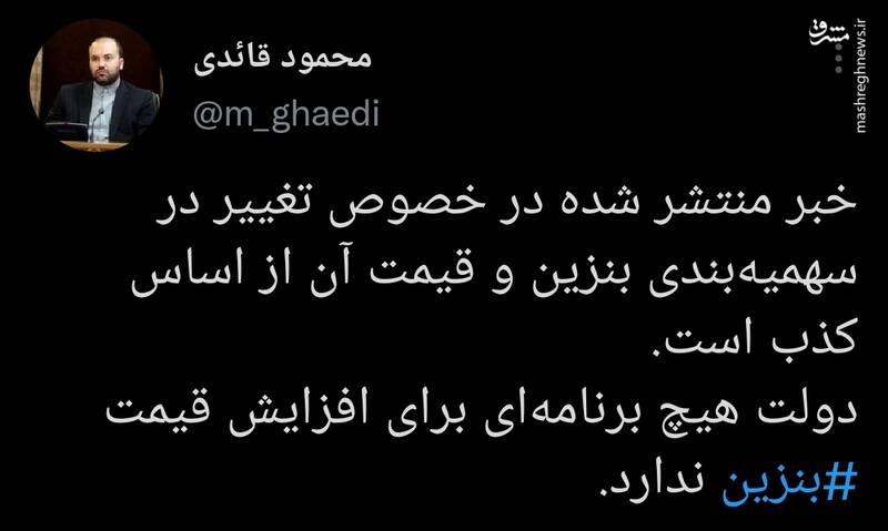 به گزارش پایگاه خبری تحلیلی گرو، محمود قائدی، مشاور سخنگوی دولت در توییتر نوشت: