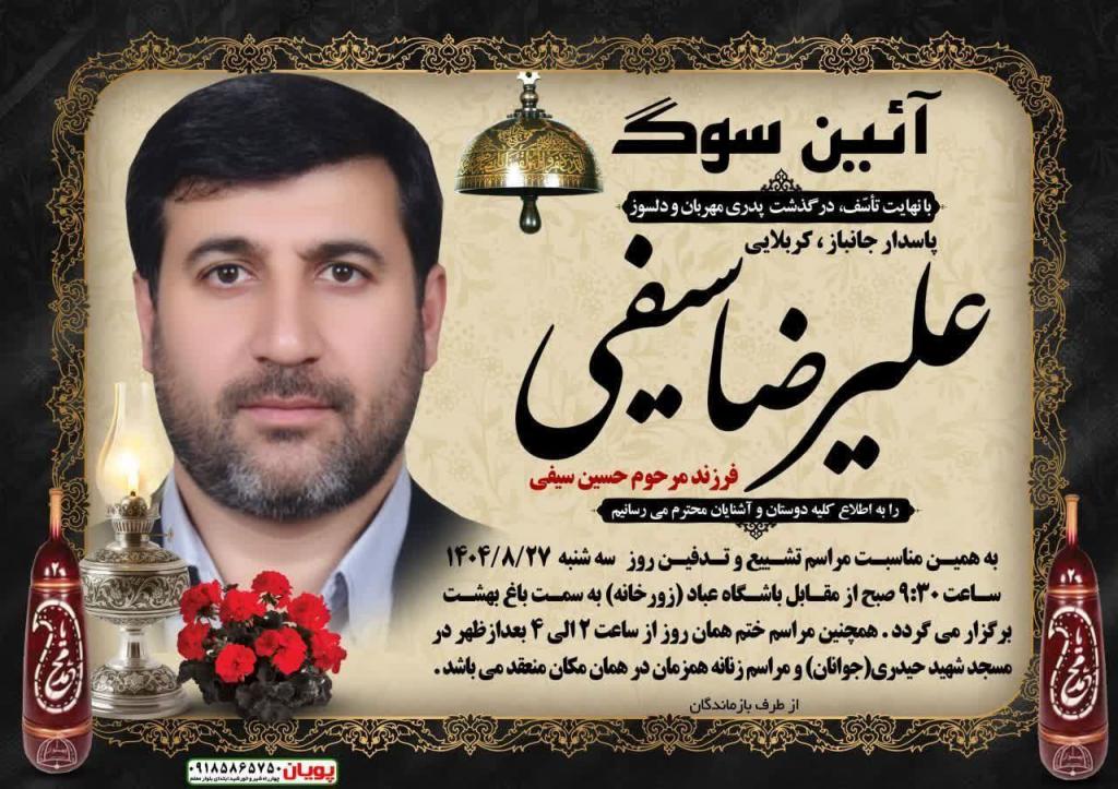 مراسم تشییع و خاکسپاری مرحوم سیفی امروز سهشنبه از ساعت ۹:۳۰ صبح از مقابل باشگاه ورزشی عباد برگزار و مراسم ختم هم امروز از ساعت ۱۴ الی ۱۶ در مسجد جوانان نهاوند برگزار میشود.