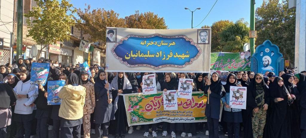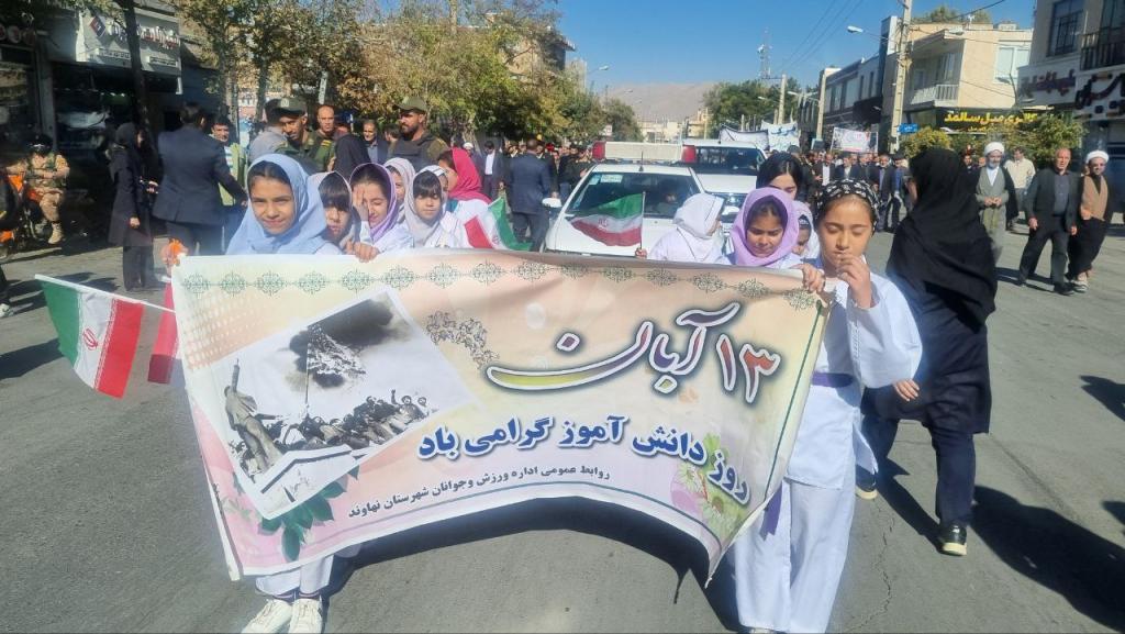 به گزارش پایگاه خبری تحلیلی گرو، همزمان با سالروز ۱۳ آبان، روز ملی مبارزه با استکبار جهانی و روز دانشآموز، مردم ولایتمدار و دانشآموزان انقلابی شهرستان نهاوند با حضوری پرشور و دشمنشکن، بار دیگر وفاداری خود را به آرمانهای انقلاب اسلامی و ولایت فقیه به نمایش گذاشتند.