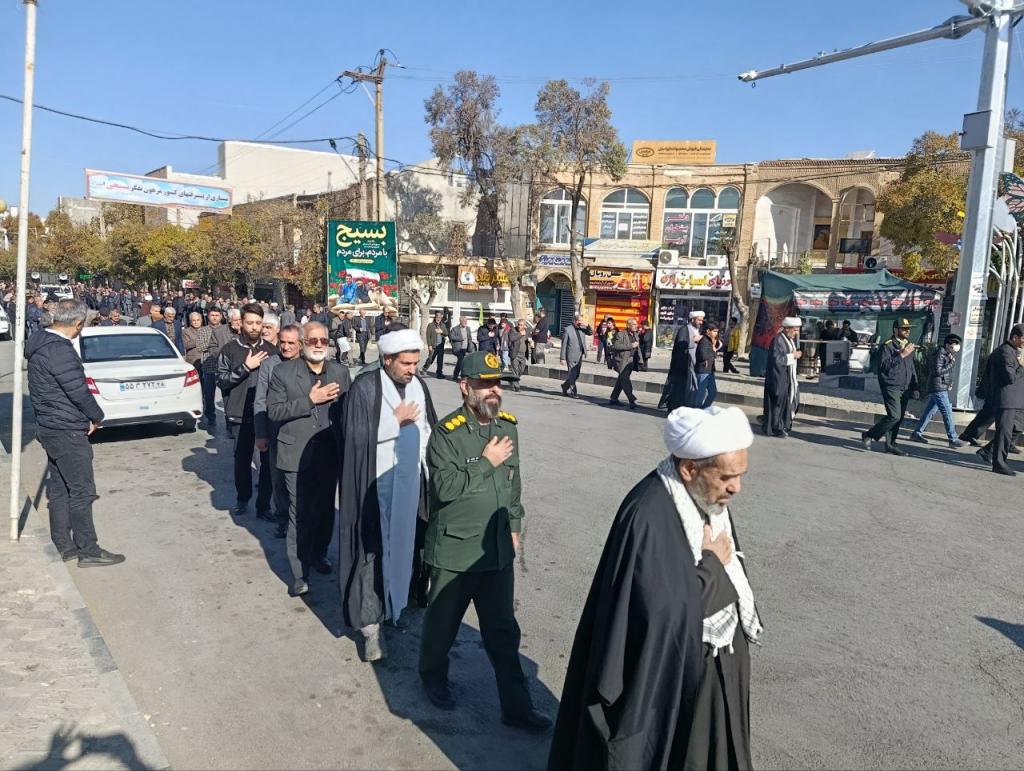 به مناسبت ایام شهادت بانوی دو عالم حضرت فاطمه الزهرا(س) و مراسم سوگواری و عزاداری با حضور بیرانوند فرماندار،امام جمعه ، معاون سیاسی واجتماعی فرمانداری ،علما و روحانیون، مسئولین، نیروهای نظامی و انتظامی، خانوادههای معظم شهدا و ایثارگران و اقشار مختلف مردم از مقابل مسجد شهید حیدری تا مصلی نمازجمعه برگزار شد.