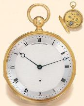 یک ساعت زیبای جیبی ساخته شده از طلای هجده قیراط. بدنه این ساعت و تمام اجزای داخلی آن به طرز استادانهای کاملا با دست ساخته شده است.