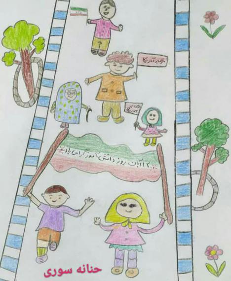 کشیدن نقاشی با موضوع 13 ابان از دیگر قسمت های مراسم 13 ابان امسال در نهاوند بود که در فضای مجازی اجرا شد.