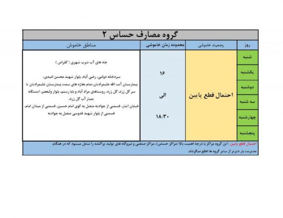 منطقه محل سکونت و کار خود را در این گروه ها پیدا کنید و از ساعت و زمان خاموشی اطلاع پیدا کنید.