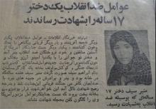 وی افزود: منافقین کوردل که دستشان به خون جوانان مؤمن و انقلابی آغشته شده بود در سال ۶۰ فعالیتهای ضدانقلاب را به اوج خود رسانده بودند و توان تحمل اقدامات این دختر ۱۷ ساله را نداشتند.