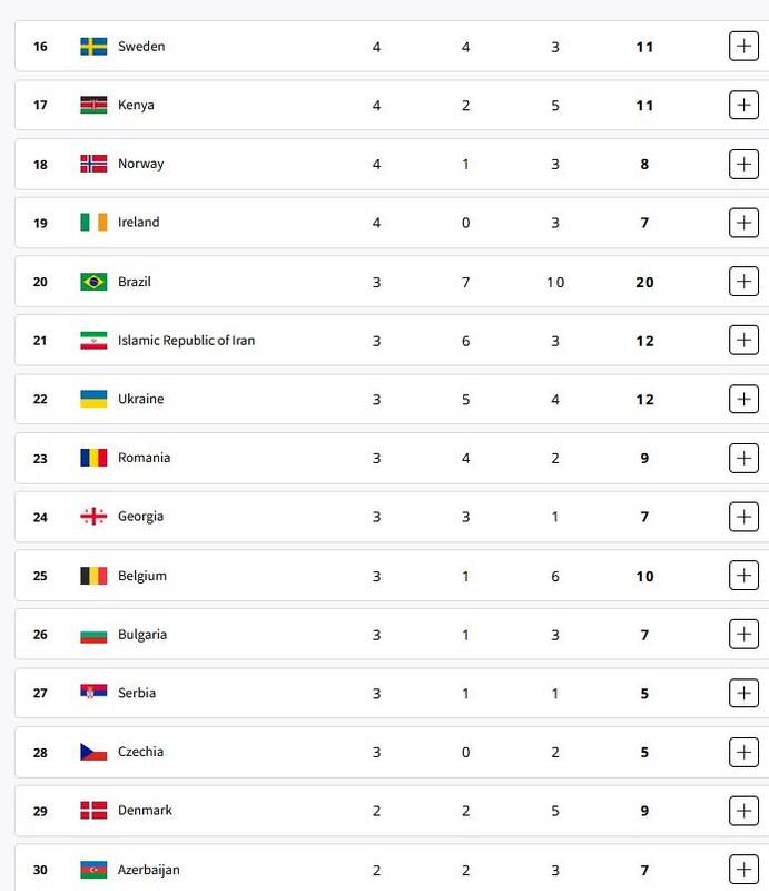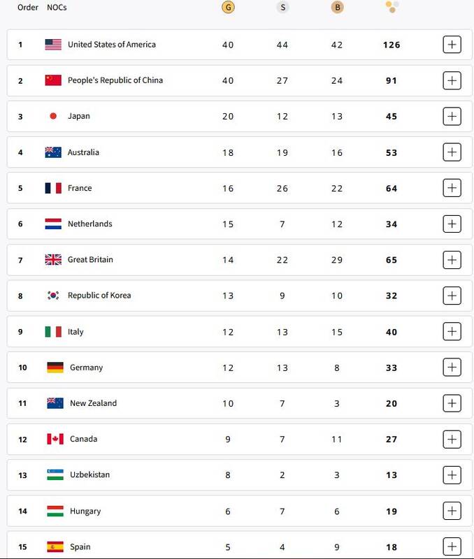المپیک ۲۰۲۴ پاریس: ۳ طلا، ۶ نقره و ۳ برنز (۱۲ مدال)
