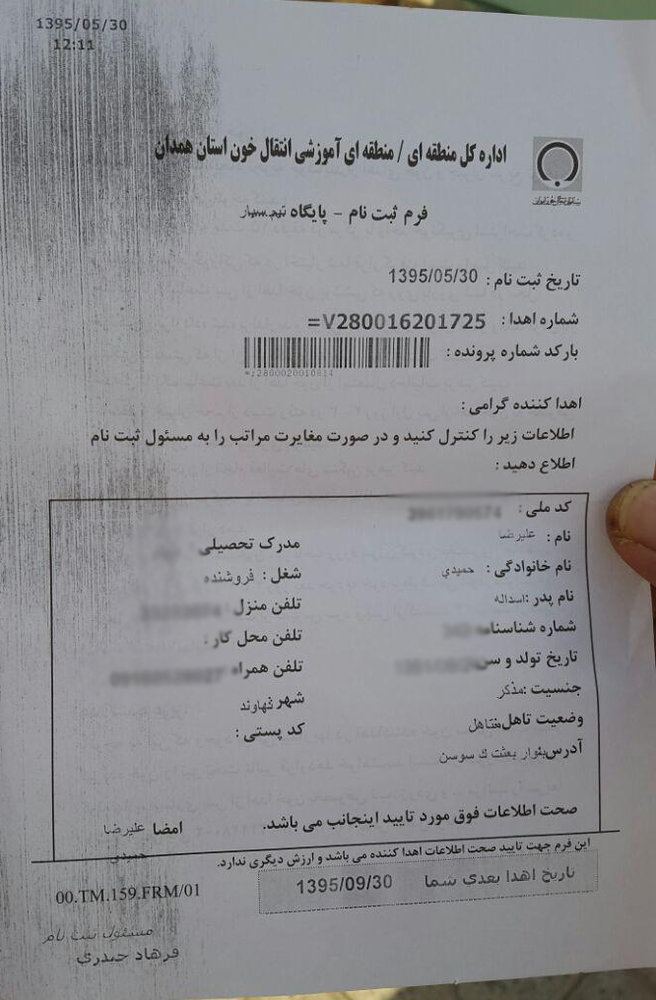 علیرضا حمیدی از اهداکنندگان خون در نهاوندگفت: منزل شخصی بنده دقیقاً رو بروی مرکز تازه تعمیر و تجهیز انتقال خون نهاوند است یعنی هر زمان که از منزل خارج شوم متوجه فعال بودن یا نبودن این مرکز خواهم شد.