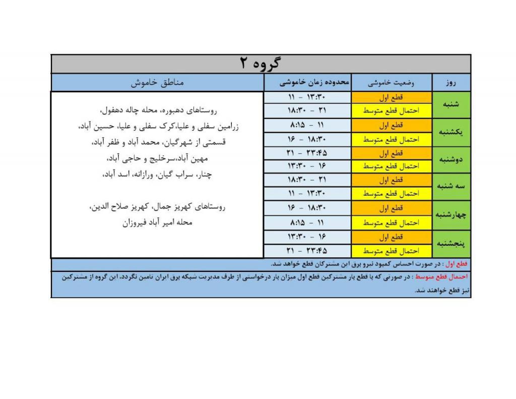 منطقه محل سکونت و کار خود را در این گروه ها پیدا کنید و از ساعت و زمان خاموشی اطلاع پیدا کنید.
