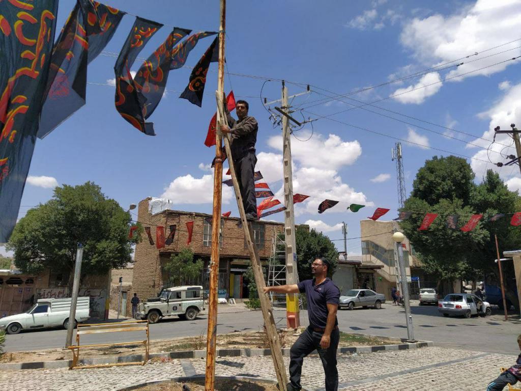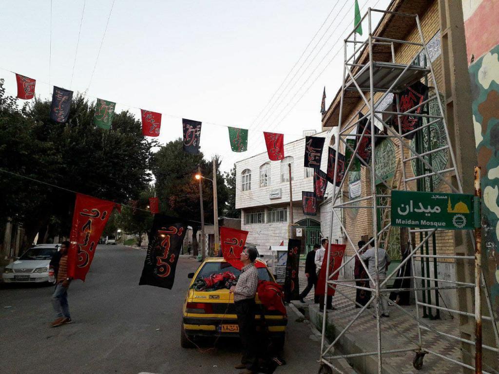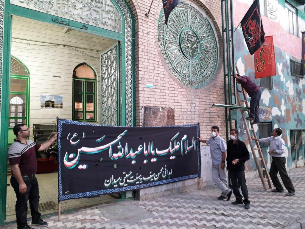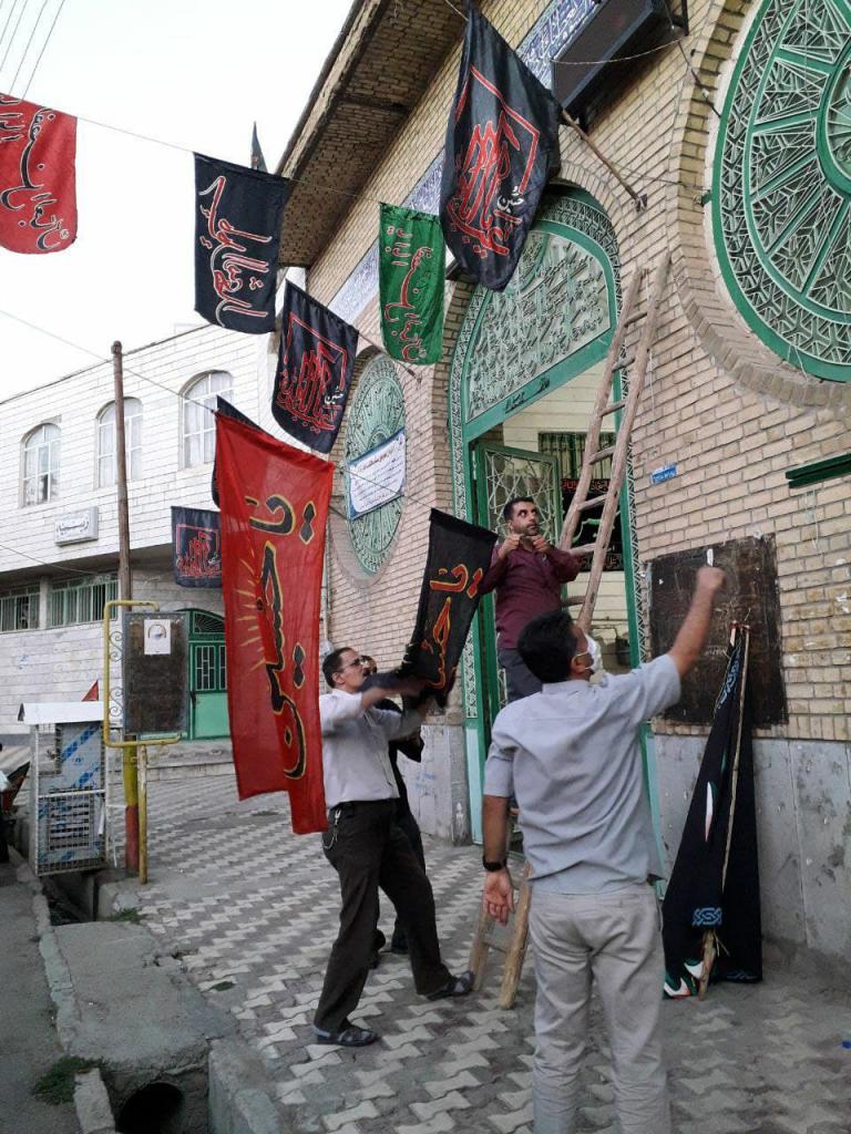 جوانان با نصب پرچم و پارچه های سیاه در این مسجد برای عزاداری ایام سوگواری امام حسین (ع) و یاران با وفایش آماده شدند.
