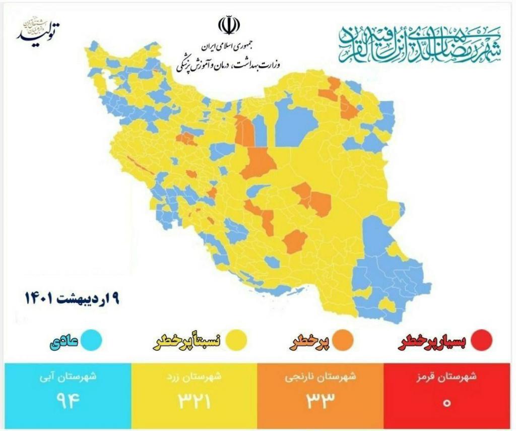 تعداد شهرهای با وضعیت زرد از ۳۲۳ به ۳۲۱ شهر رسید و تعداد شهرهای با وضعیت آبی از ۷۵ به ۹۴ شهر افزایش یافت.