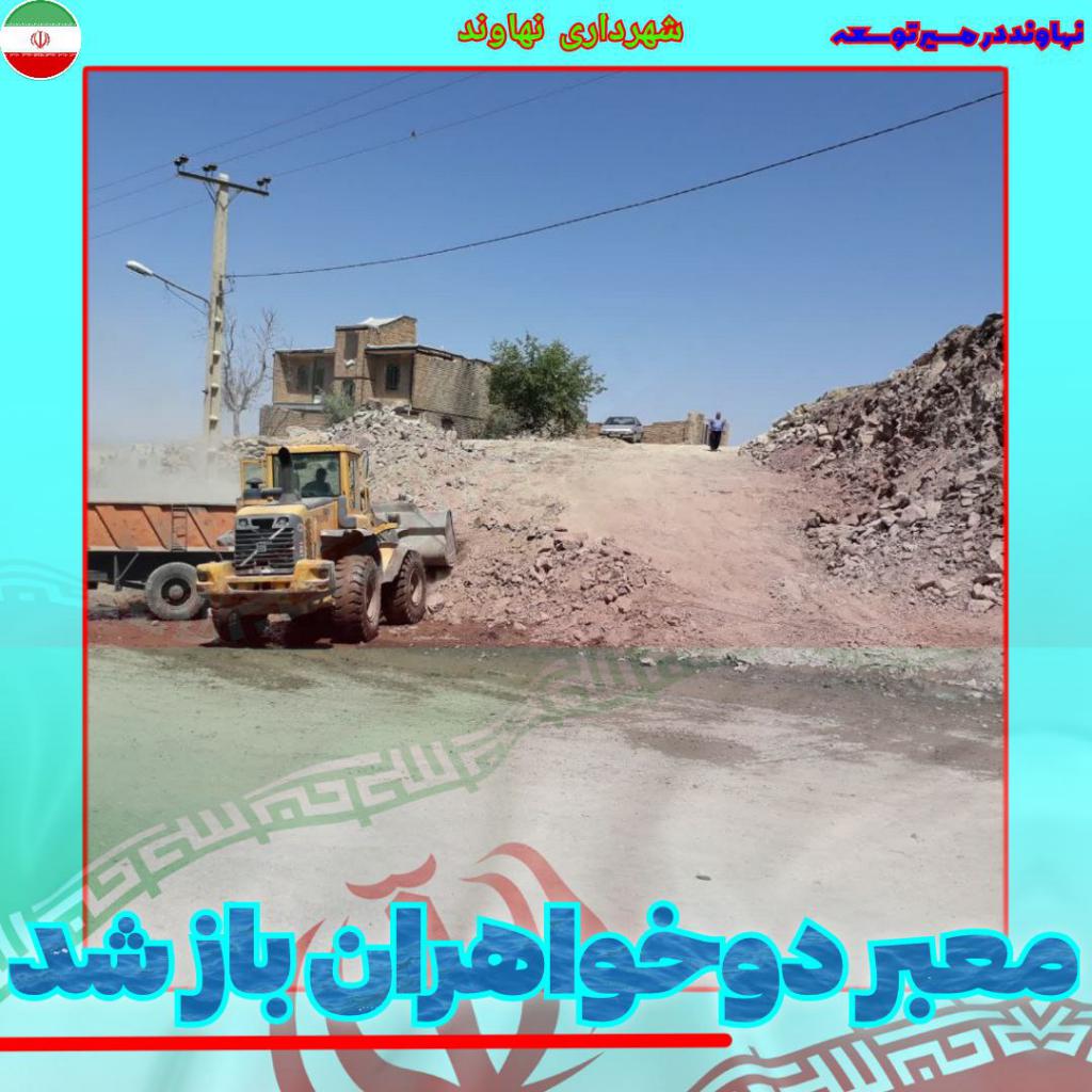 به گزارش پایگاه خبری تحلیلی گرو، با تلاش های واحد موتوری و عمران شهرداری نهاوند در روز عید غدیر، معبر دو خواهران به بلوار امام حسین باز شد.