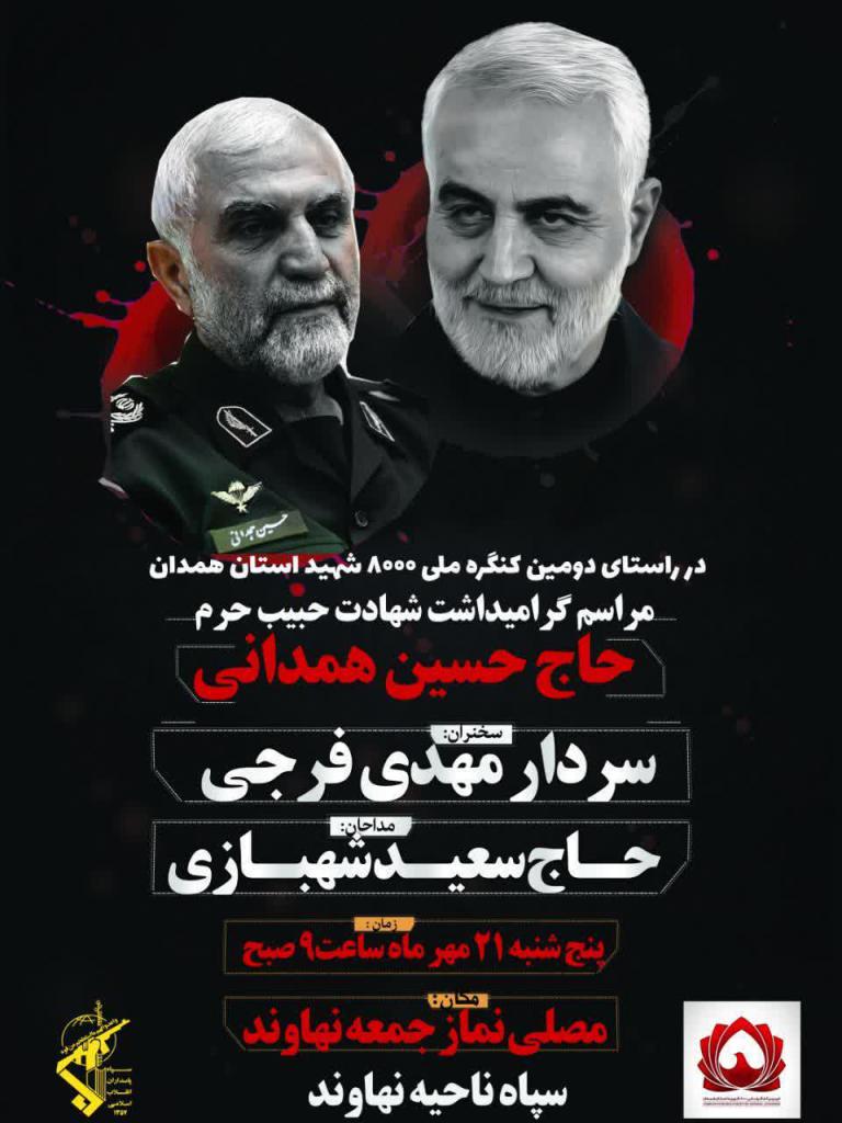 این مراسم به همت سپاه ناحیه نهاوند در روز (پنجشنبه) ۲۱ مهر، ساعت ۹ در مصلی نماز جمعه نهاوند برگزار میشود.