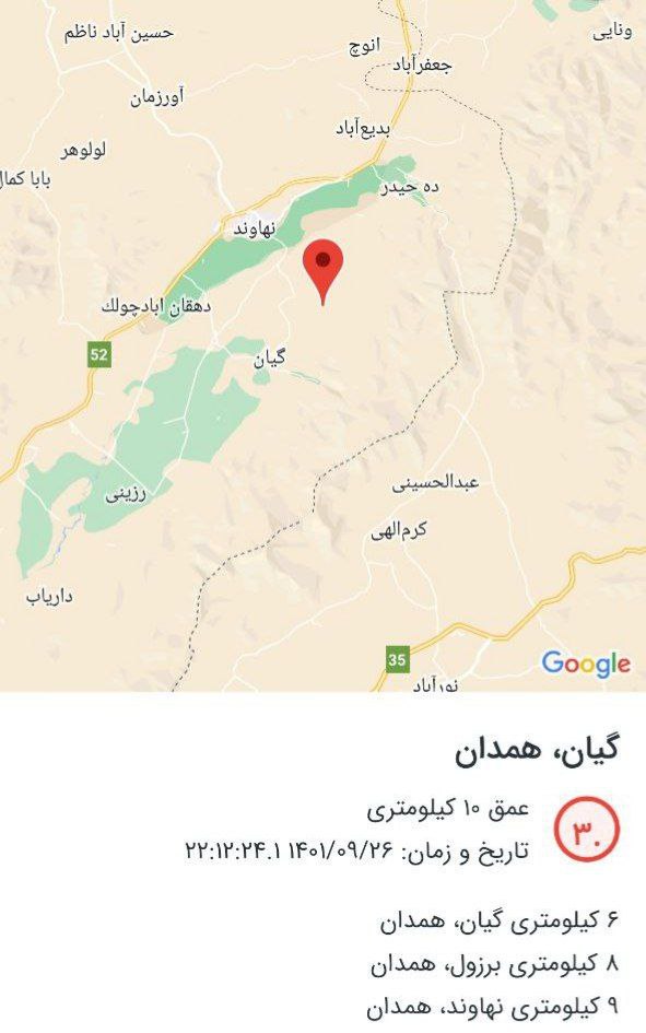 به گزارش پایگاه خبری تحلیلی گرو، زمین لرزه ای به قدرت 3.5 ریشتر شهر گیان از توابع شهرستان نهاوند را لرزاند.