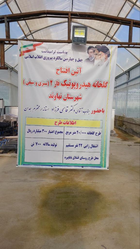 دیگر طرحی که توسط استاندار افتتاح شد فاز دو گلخانه هیدروپونیک در زمینی به مساحت ۲ هکتاربود.