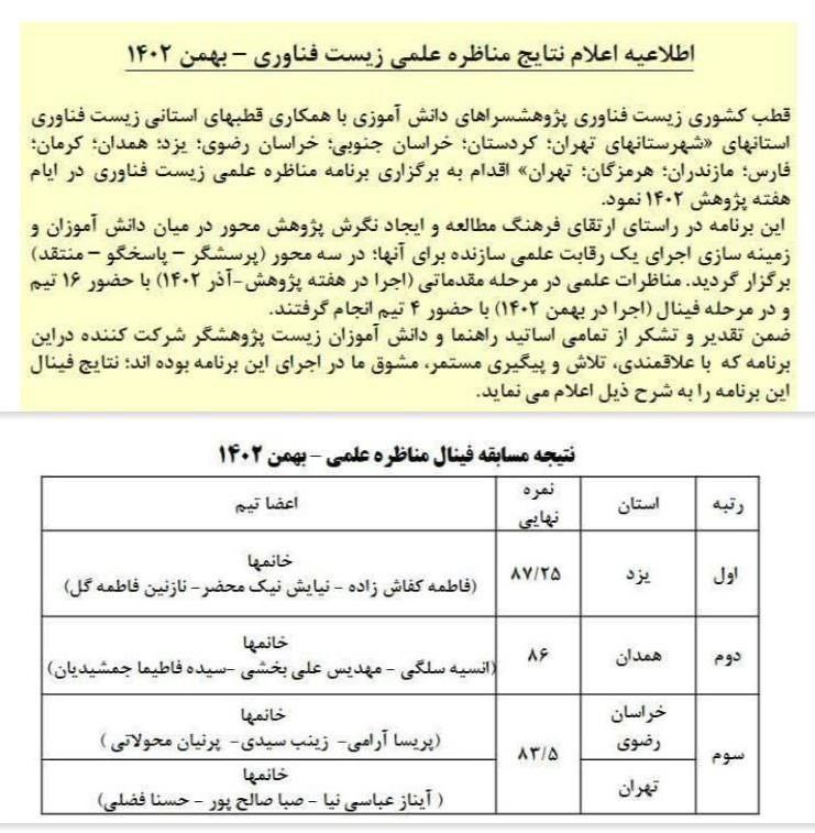 به گزارش پایگاه خبری تحلیلی گرو، احمد آقامحمدی با اعلام این خبر، گفت: این رویداد را قطب کشوری زیست فناوری پژوهش سراهای دانش آموزی با همکاری قطب های استانی زیست فناوری برگزار نمود.
