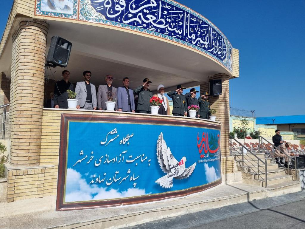 صبحگاه مشترک نیروهای نظامی و انتظامی شهرستان نهاوند به مناسبت حماسه سالروز آزادسازی خرمشهر و روز دزفول با حضور سردار مجیدی فرمانده سپاه انصار الحسین(ع)، مسئولین شهرستانی و جمعی از بازنشستگان نظامی و انتظامی در سپاه ناحیه نهاوند برگزار شد.