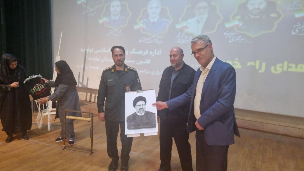 در ادامه این مراسم از اثر دو هنرمند شهرستان که به یاد رئیسجمهور شهید خلق کرده بودند رونمایی شد.