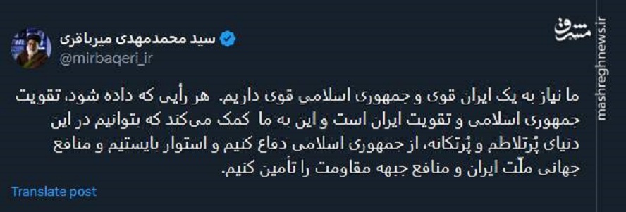 به گزارش پایگاه خبری تحلیلی گرو، آیت الله میرباقری در توئیتی پیرامون حضور مردم در انتخابات نوشت:
