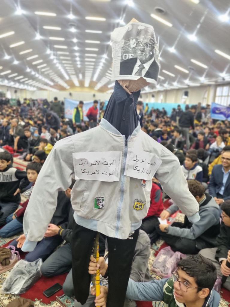 آدمکها و عروسکهای سران استکبار جهانی توسط دانش آموزان در تجمع امروز خودنمایی میکرد.