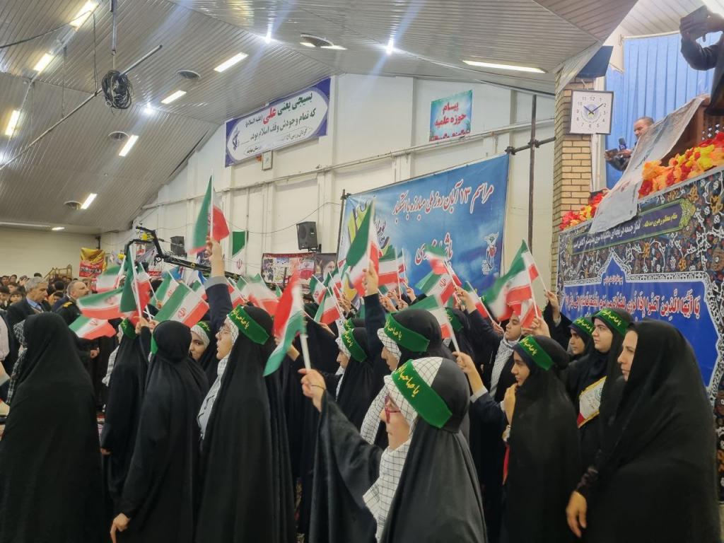 قرائت بیانیه پایانی و الله اکبر حضار در تأیید بندهای این قطعنامه پایان بخش مراسم ۱۳ آبان امسال در نهاوند بود.