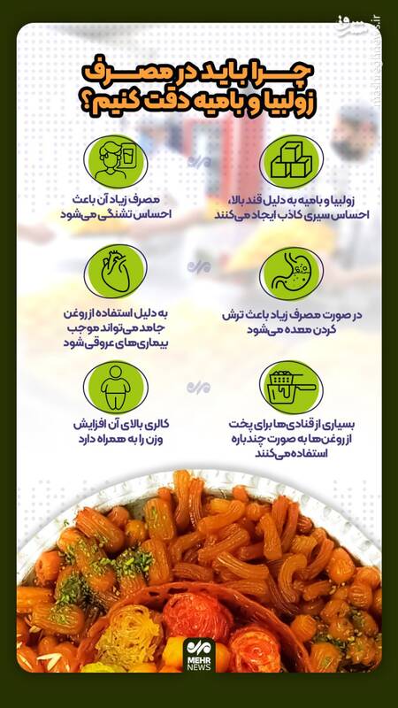 اینفوگرافیک/ چرا باید در مصرف زولبیا و بامیه دقت کنیم؟