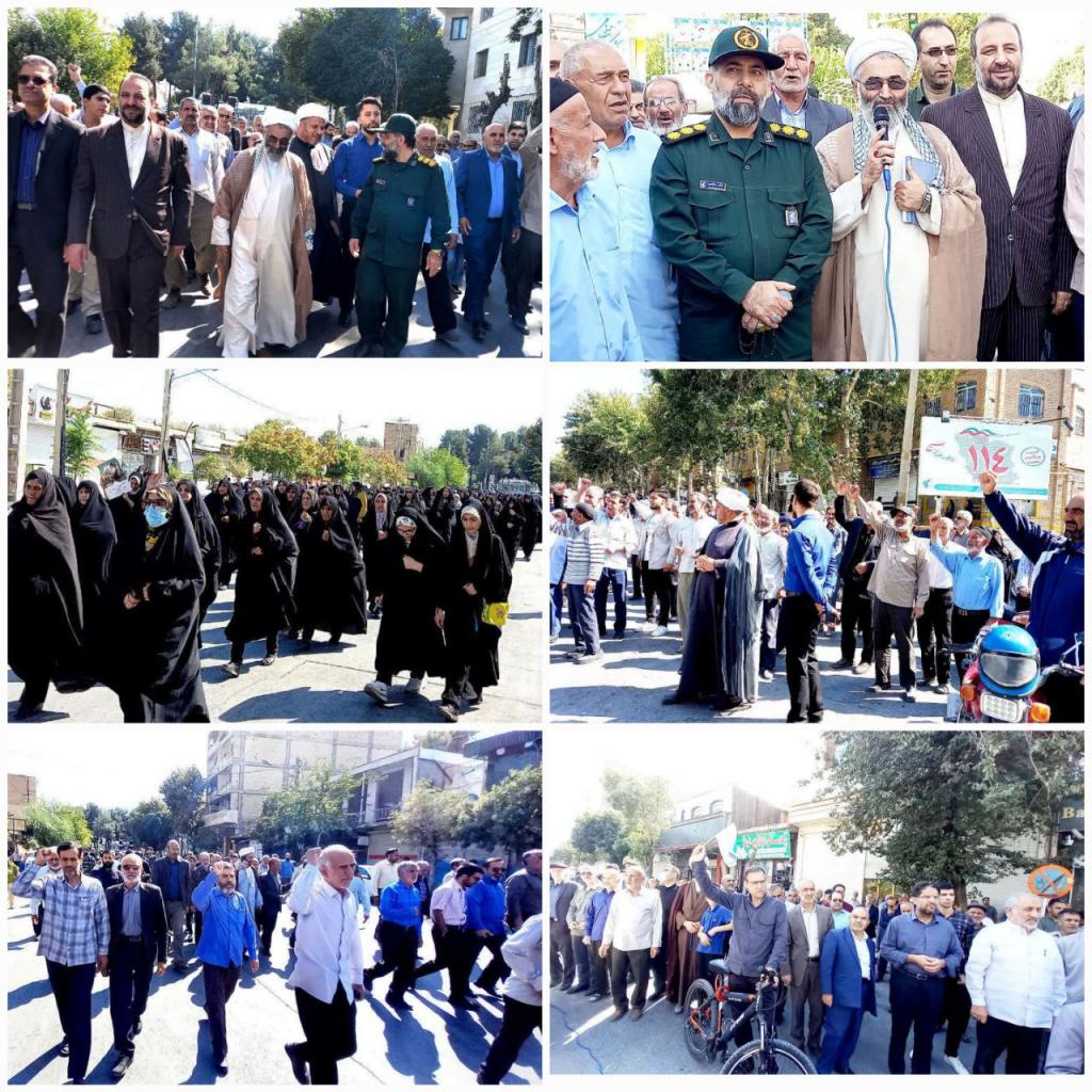 راهپیمایان نهاوندی با سردادن شعارهای کوبنده «مرگ بر آمریکا»، «مرگ بر اسرائیل» و «القدس لنا»، ضمن محکومیت نسلکشی وحشیانه در نوار غزه، بر ضرورت وحدت جهان اسلام و ادامه یافتن مسیر مقاومت تا تحقق وعده نهایی الهی و آزادی کامل فلسطین تأکید ورزیدند