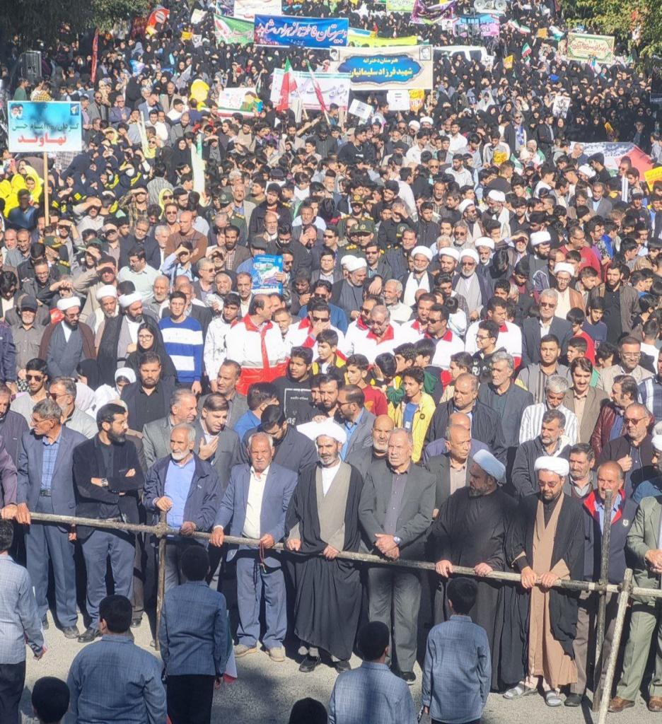 به گزارش پایگاه خبری تحلیلی گرو، همزمان با سالروز ۱۳ آبان، روز ملی مبارزه با استکبار جهانی و روز دانشآموز، مردم ولایتمدار و دانشآموزان انقلابی شهرستان نهاوند با حضوری پرشور و دشمنشکن، بار دیگر وفاداری خود را به آرمانهای انقلاب اسلامی و ولایت فقیه به نمایش گذاشتند.