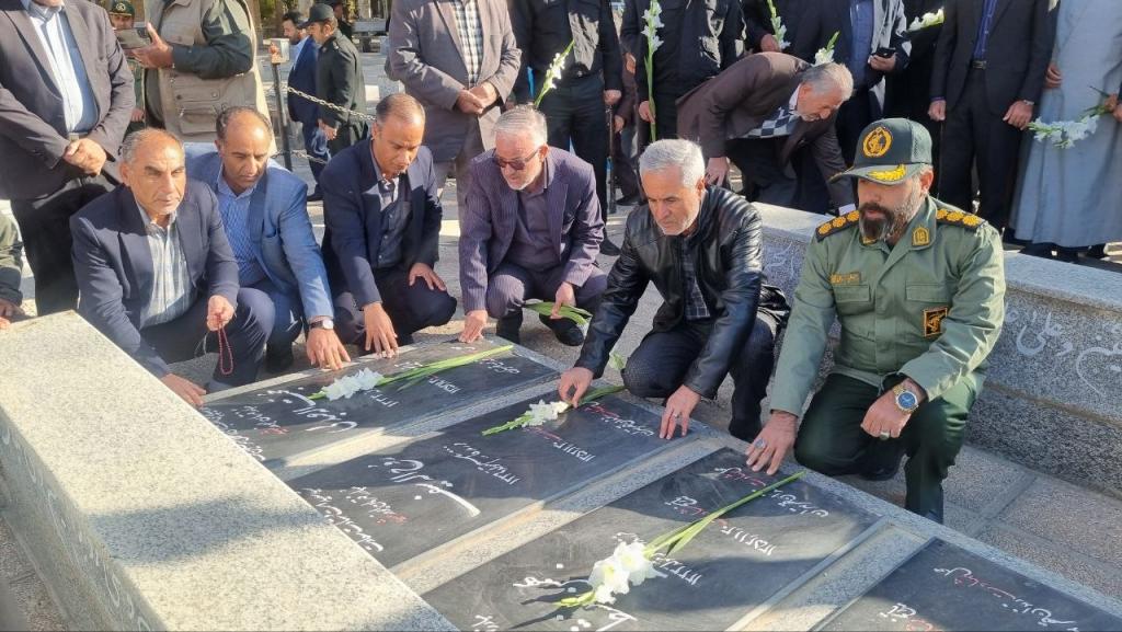 در این مراسم حاضرین با قرائت فاتحه و نثار گل نسبت به مقام والای شهدای شهرستان ادای احترام کردند.